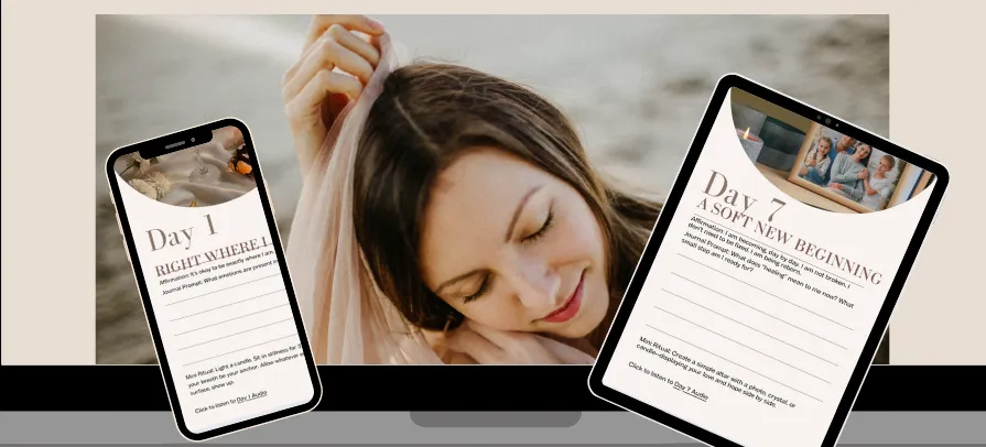 Each day gives you one small but powerful practice—an affirmation, a reflection, and a ritual—to help you return to yourself and start moving through your grief with compassion, not pressure.This isn’t a course.
